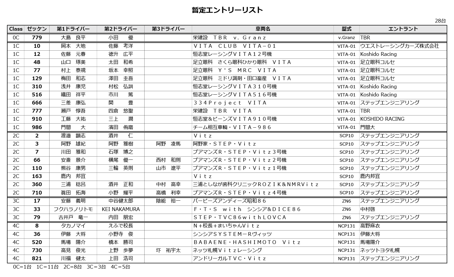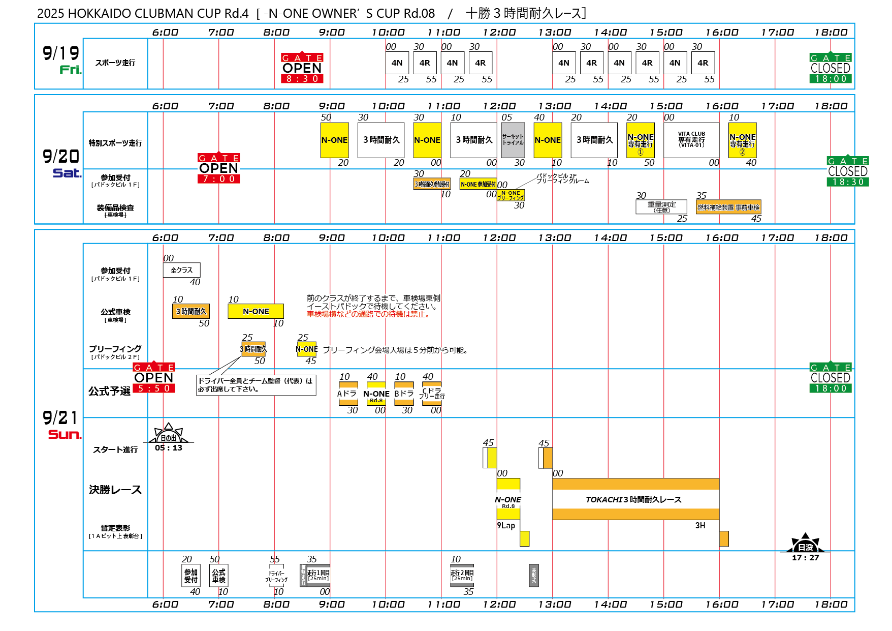 暫定エントリーリスト・タイムテーブル掲載 3時間耐久特別規則書追記有(0916)