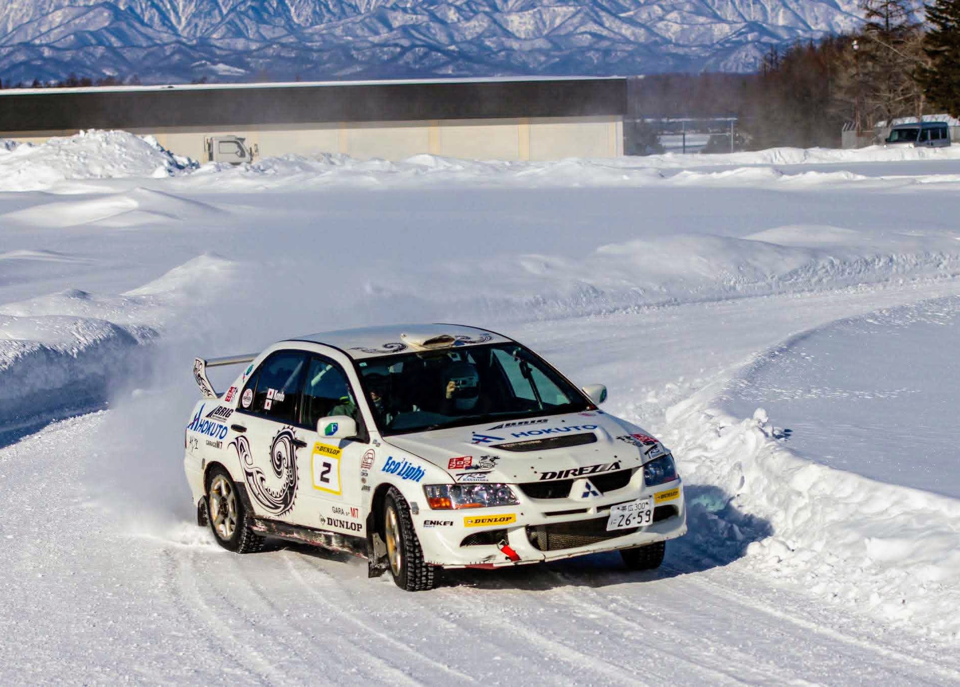 十勝スピードウエイ場内の雪上コース、メインスタンド側の通路を使用した特設SSコースを計6本程度走行し合計タイムを競う走行会です。