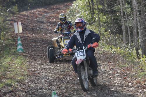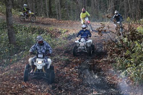 写真奥に見える バンガロー(宿泊施設) が小さく見えます。 ひたすら全開で昇るのみなのですが、走行後のミーティングでは 「昇り前にシケインを設けよう」というご意見も頂きましたが、「昇れんべ?」 という事で保留中! 完全クローズエリアとして実施したので ATV や 車検なしBIKE も走る事ができた公道区間。