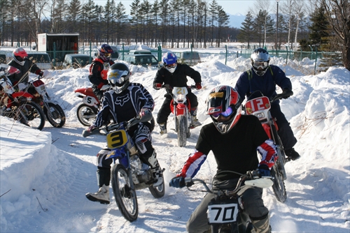 雪中バイクde3時間遊び耐 は 予定通り 1月19日(日曜日) に開催しますよ! ただいま絶賛申し込み受付中です。 「ちょっと~ 雪ないんじゃないの~・・・」 と思うでしょ? 大丈夫です 15cm位はあります。 草わらなので雪が解けずに残っていますので、このままコースを作成して開催しますので 「雪がないから・・・」とのんびりしていた皆さんは大至急申込書をFAXしてくださいね! 15cm位の雪を利用したコース作成になるので昨年のような 高~い雪壁 はありませんが、ここ数日以上に寒いので地盤はしっかりと ”凍って” いいます。どんなに頑張ってもこんな雪壁にはなりませんので、雪壁を利用した バンク走行 は出来ないだろ~な~((+_+)) いったいどんなコースレイアウトになるかな~・・・。 予定では 1月15日(水曜日) には作成を初めてみようかな? と思っているので、完成次第に皆様にご報告させていただきますね! ただ構想では、一昨年のように 山を囲むレアウト になるかな!(^^)!