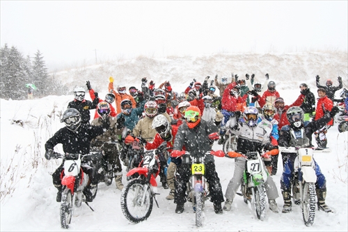 雪中バイクde3時間遊び耐の第2戦に参加してくれたみなさん。 本当にお疲れ様でした。 天気予報では 午後3時ころからの雪 という感じだったと思ったから 「ま~ゴール後の雪ならOKじゃね?」 なんて甘い考えでいたら・・・ しっかりとバチがあたりました。 朝から雪です。 記念写真も横殴りの雪。 スタート後も横殴りの雪となり、ず~っと晴れていた日が懐かしく感じちゃいました。天気って いけず ですね。 悪天候にもめげずに走ってくれたみんなを撮影した動画をつないでみたので ”参加記念&開催記念” ってことで見てください。