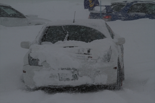 「雪少ないから雪がほしい~なー~・・・」なんて言っていたら本当に雪が降ってくれました。 しかも、イベント当日に・・・そりゃね~べや~( ゚Д゚) 「いや~まいった」 本日(2月16日)は年に一回の ウィンターラリー開催日 で、今年は35チーム以上がエントリーしてくれていて 「なんだか人気イベントになってきた?」 と思っていたら、その気のゆるみが天にも感じられたのか天気が緩みました。 しかも、どっさりやられました。 朝一番からせせっせせっせと除雪をしていたのですが、3コース中の1コースは 「移動中危険かな?」 と判断して中止にし、2コースで開催するハズだったがレッキ(コースの下見)をしたら選手から「またく見えない」「どこがコース?」との声も聞かれたので、タイムを計測するイベントなので中止と判断させていただきました。 たしかにコースを作成したわたくですら除雪中に「あっ、ここコースじゃない・・・」 と思うこと数回。 初めて走る方々にはあたり一面 真っ白 に見えたことでしょう。 あ~残念。 本当に残念。 でもせっかくご来場いただいたので参加者みんな(帰っちゃった人もいるけど)で記念撮影をしてから練習走行会を本日走るはずだった TOKACHI-1 の半分だけ使用してして実施しました。連取走行の模様は・・・