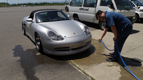「ちょ~きもちい~!」とは今日の事を言うのでしょう! 実に北海道らしい気候で 日向は「ちょっと暑い?」でも日陰に入ると「ひんやり」とする超いい気持の日に、Eurocup&Worldcup第2回が終了しました。 参加台数は20台前後でちょっと少なめでしたが、参加台数が少ないと「た~っぷり走れるからうれしいよね~!」 という参加者もいて、主催者としては「・・・」ってなりますが、ま~参加者が喜んでいるから良しとしましょう。人間にはとっても良い天気だったようですが車には厳しいかったようで、走り終わった瞬間に「クーリング」といって水をかける参加者も・・・