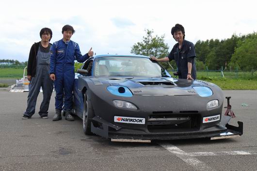 昨年、シーズン最後にジュニアコースのコースレコードを塗り替えられた黒川選手。 本日、ジュニアコースを愛車「DLC ハンコック7」でタイムアタック! 徐々にタイムを詰めていき、セッティングを変えコースイン。 2周目に48.304のタイムを出し、さらなるアップを目指し1コーナーを回った時点でトラブル発生・・・ 終了・・・。 「47秒が見えたのに~」との事でしたが、それはまた次回ですね。 レコード更新おめでとうございます。 さて、RX-7でタイムアタックと言えば、7月6日(日)にクラブマンコースに於いて、 『ロータリーカップ』を開催(開幕)します。 RX-7のみならず、ロータリーエンジン車にお乗りの方のご参加お待ちしております。