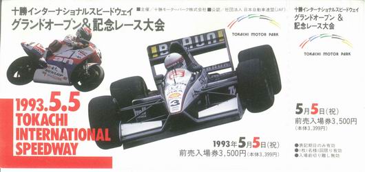 今年の8耐に参戦される方をご紹介。 十勝(スピードウェイ)をバイクで走られている方であればご存知でしょう。「ENEOSレーシングスクールin十勝」で講師とインストラクターを務めているお二人です。 左は、軽自動車耐…あっ違う、昨年の8耐で2位表彰台をGETした武石伸也選手。 武石選手は'92年日本人として初めて8耐でポールポジションを取った選手でもあります。 TOPの写真は、ここ十勝スピードウェイがグランドオープンした日(平成5年5月5日)の入場チケット。 ゲストライダーとして写真が載っています。 その日は、岩橋健一郎選手・阿部典史選手とともにバイクでデモ走行。 たしか手を骨折していたと記憶していますが、メインストレートでウィリー走行を披露してくれました。 そんなサービス精神旺盛な(ENEOSレーシングスクールでも受講生の走りを見る為3時間走りっぱなしの)武石選手です。 今年は去年と同じく「No.5 TRICK ☆STAR RACING」から参戦します。 武石選手のブログはこちら 皆で応援しましょう。 次回は右の選手をご紹介しますね。