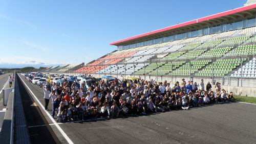 メインストレートにクルマを並べてみんなで記念撮影をしたTipoイベント ”外車祭り”! この撮影なんだか気持よかった~\(^o^)/。 レース時にもグリッドにクルマを整列させているけど、全然違う感じでコースになれている自分たちでもなんだか ”どきどき”しちゃいました(*^_^*)。 中盤から前方を撮影した感じがこの写真・・・前が見えません(ー_ー)!! そんくらい並んでくれてとっても気持ちが良い! 後続の方に並んで頂いた皆さんも前列で撮影するために移動の会話も楽しそうでしたよ(^◇^) 「お~すげ~・・・」 「カッコい~・・・」 「かわい~・・・」 「なんだこりゃ?」 って感じで、てくてく歩いていました。 初開催なので、天気の事やどんだけ集まってくれるかも心配で違う ”ドキドキ” 感があったけど、当日は天気も良ったし、みんなニコニコしていて最高の日でした!