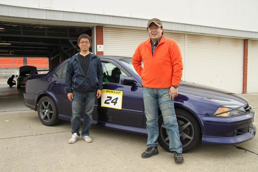 隣のアルテッツァ乗りR谷さんに誘われて来たとの事。R谷さんも先月サーキットを初めて走ってハマり後輩を誘ったそうです。 この走行会は、1台の車を数人でドライブする事ができます。 今回は3組が複数ドライバーで参加されました。