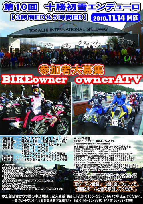 オフィシャルも頑張るから、みんなも頑張って走ろう!! ではエントリーお待ちしています。 申込用紙はここ ⇒ ”第10回十勝初雪エンデューロ”