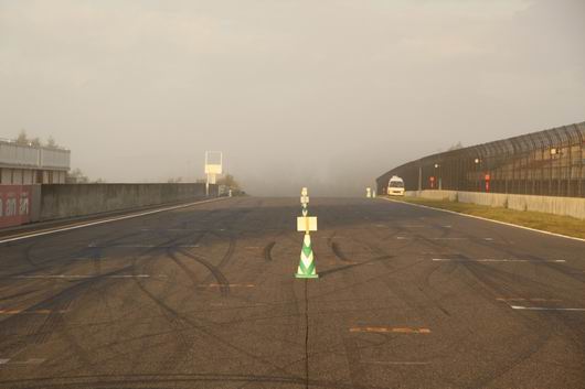 おはようございます。 朝靄の中のサーキット。 こんなシーンなかなか見られないでしょ。 もう少し早く撮れればもっと良かったんですけどね。 本日は「ZeroYon」&「HKS HYPER CHALLENGE秋」です。「ZeroYon」の準備もOK! みなさんサーキットへ遊びに来て下さいね。