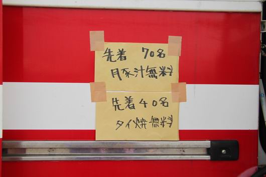 でも、残念ながら1’26.332でした。 タイムを出すには良い季節。 来月いろいろな走行会を開催しますので、皆さん走りに来て下さいね。 宣伝 11月3日 秋の収穫祭 11月第2・第3土曜 Best Season Day 11月14・21・23日 2010ありがとう走行会 11月27・28日 走れたらラッキーDAY レースとは別に、HGTS事務局のはからいで、 先着70名様に豚汁、先着40名様にたい焼きのプレゼントがありました。