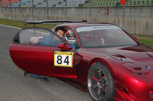 朝のスポーツ走行(GT特別枠)でクラブマンコースのFR-TURBOクラスレコードを更新(1’26.296)。 常松さんがリタイヤすると、次にコースレコードを狙えるポジションにいたのは堀さん。