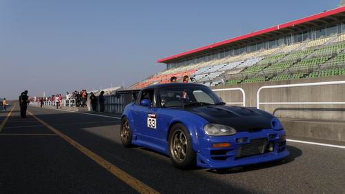 軽自動車の 5時間+ロスタイム耐久レース がスタートしました! 夕刻の16時チョイ前のゴールを目指してみんなガンバレー\(^o^)/ でも・・・ ポールのマシン(浅松自動車)がいない・・・ どこに?なんと、コースイン規定時間に間に合わずにPitスタートになっちゃいました((+_+)) 予選TOPマシンがまさかの最後尾スタート!! 頑張れ №33浅松自動車チームよ!! この大会ではVitzも多数参加! Vitzは仲良くみんなでPITスタート!