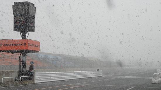 全然納得ができません! 今日の天気予報は ”晴れ/くもり”で降水確率は10~20%くらいのハズなのに、なんですか? この天気・・・。 悔しいけど気持ちよく雪が飛んできています・・・。 風が強いので日高山脈(サーキットの西)方面から飛んできているんです。 コースに積もりことは無いから安心してね!