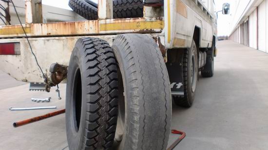 皆さんの安全を管理しているレッカー車! お世話になった方もいるのではないかな? ”ちょいとコース確認でも!”と思いレッカー車に乗り込もうとしたら、タイヤがなんと丸坊主ではないですか!! このタイヤでは万が一の時にレスキュー活動に支障がきたすのでタイヤを交換!! このタイヤなら少しくらいのOFF走行もOKかな?