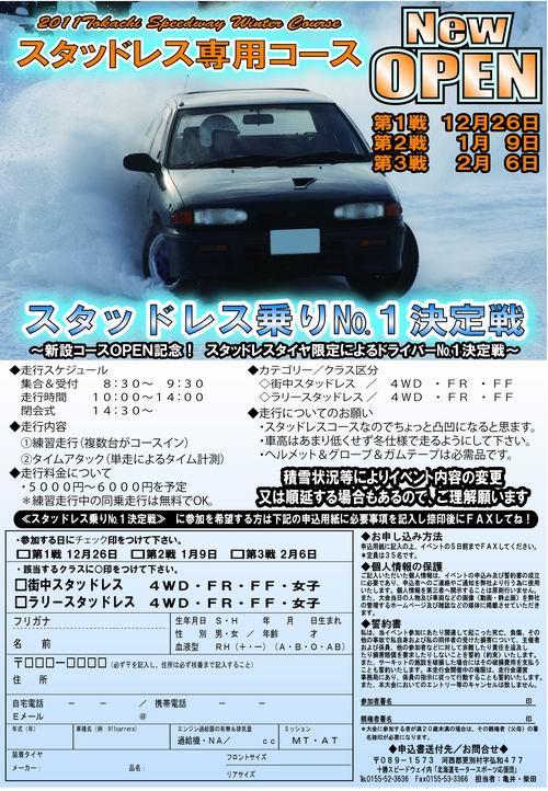 もうみなさんお気づきの事ともいますが・・・ 雪が降らない(*_*) チョビッと降るけどドカッとは降らない・・・。 ま~こればかりは頑張ってど~にかできるわけでもないので雪乞いするしかない。 でも雪が降ってから参加者を募集しても遅いので、冬イベントの募集をどど~んとはじめていますヨ(*^_^*)。 ホームページも冬仕様に変更されているので、みんなで冬のサーキットにも遊びに来てね!
