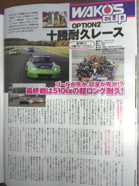 Option2 2011年1月号(好評!発売中!)に、10月31日に行われました「WAKO's cup OPTION2十勝耐久レース第3戦」が掲載されました!1ページ目