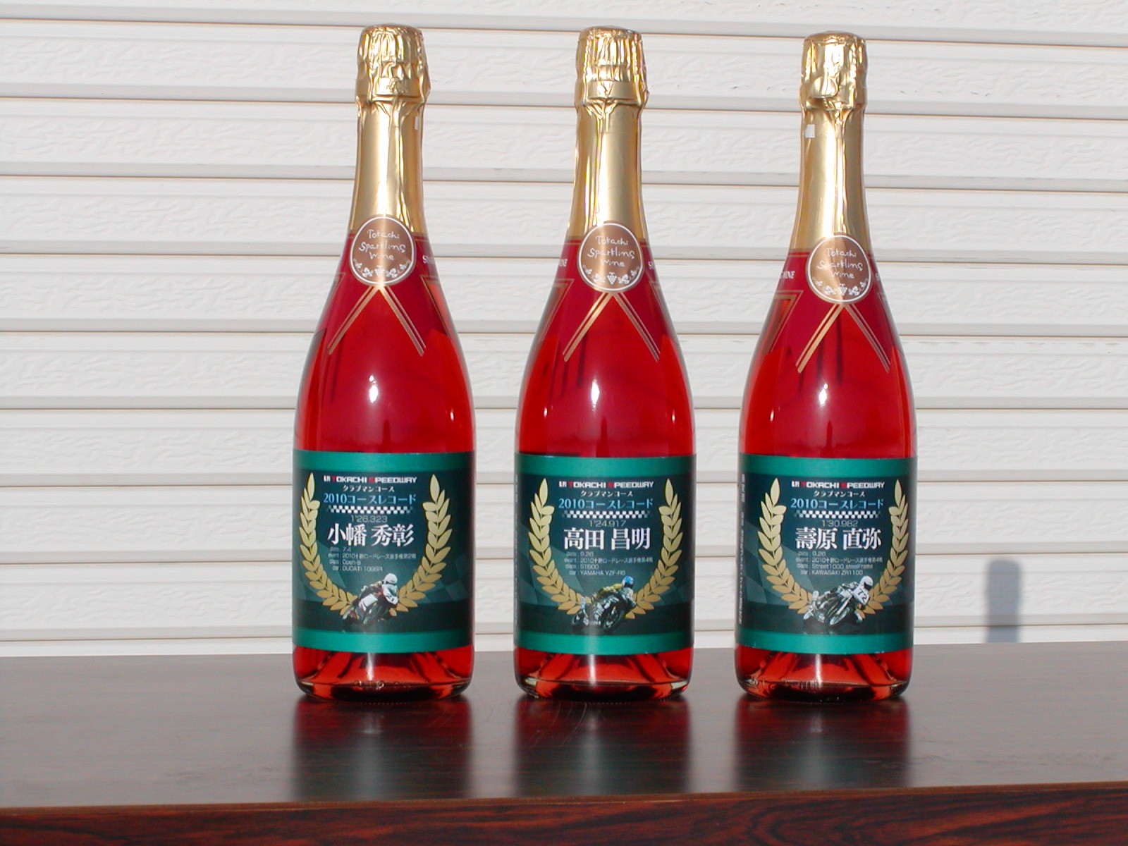 お名前・車・記録が刻まれた「オンリーワン」シャンパンです! 次は、自己ベストを更新された方を紹介いたします。 2010-12-07 岡田 亮 レガシーW 1'43"017 119.02km/h