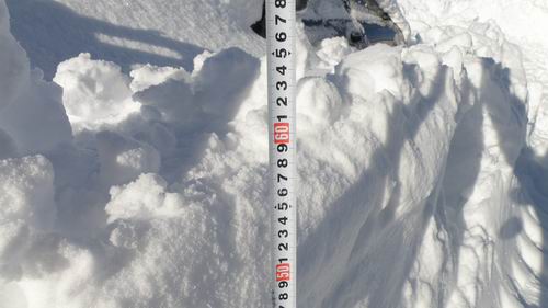 昨日は大雪だったけど本日は快晴なり\(^o^)/。 ま~良く降りました。 しかも湿った秋田県? 新潟?のような雪です。 あ~長野の野沢スキー場の雪に近いかな?? なんてよくわかんないけど・・・雪の量は60cm。 こんだけあればコース作りも楽勝・・・ なんてことには全然なりません。 雪が湿っているので踏むと直ぐに固まるので油断するとショベルも・・・
