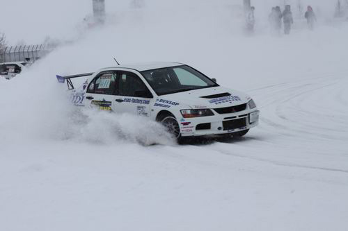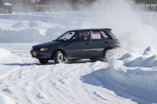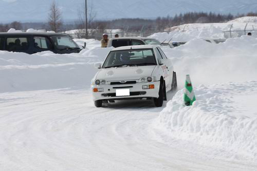 本日の日中の気温はなんと・・・ 1度くらい。 そ~です ”プラス”なんです。 暖っけ~! でも昨日の氷上タイムトライアル中の気温はたぶん・・ 氷点下7度くらい? 陽がさしていない時はそれはそれは寒かった! 雪も降っていたので顔が ”しばれた”。 でもそんな中でも参加者の走りを収めたので、結果表と一緒に見てくださいね! ◆2011第1回SKスポーツ 十勝氷上トライアル の動画! そしてここからは参加者の写真&結果。 ◆Stadless 4WD 1位 №1 Stadless 4WD 熊谷 和幸 スターレット①2’39.99 ②2’35.66 ③2’35.66 2位 №2 Stadless FR 山根 雅史 S2000