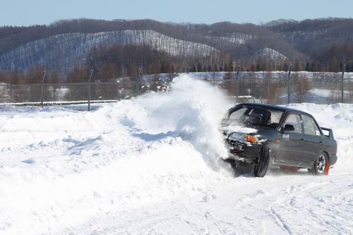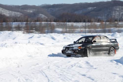 「あのさ~ ラリー競技に千歳に行くんだけど途中でコース走っていったいいかな~・・・」 との電話があり 「OK!」と返事。 そして本日(1月22日)にやってきたのがこの2台! AXIONのオレンジランエボとAXIONの黒いランエボ!