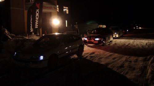 「なぜこんな夜中に・・・」 と思うような真っ暗な中での走行イベントになっていますがまだ18時です。 初めて参加していた方々は 「クルマが横向いたら目の前が真っ暗でなんも見えん・・・」 って嘆いていたけど、そりゃ~そ~だよね、ヘッドライトはクルマの正面を向いているんだから、横向いたら視線の先は真っ暗に・・・(@_@)。 でもこの暗闇が参加者の ”走りたい” という心をくすぐるんだろうね(*^_^*)。 なんとも不思議なイベントを開催してくれた ”UNドリームファクトリー” さんお疲れさまでした! 一応Night走行の雰囲気を動画でマトメテみたので見て頂戴! でもほとんど真っ暗だけど・・・(-_-)zzz 夏にもこんなイベントやったら楽しいんだべか? 昔のジュニアコースNightみたいに・・・。