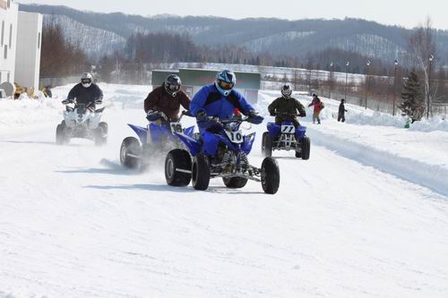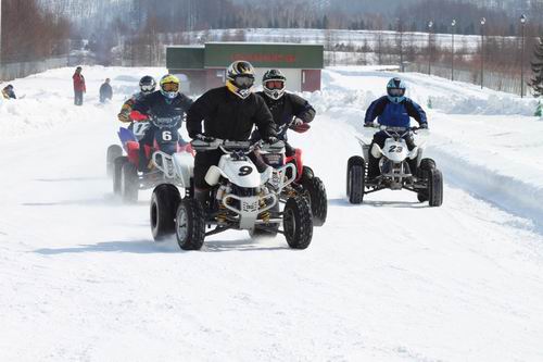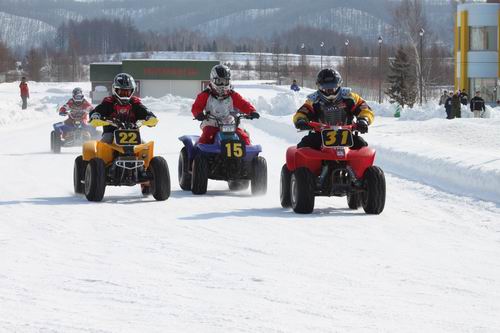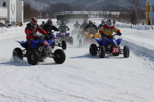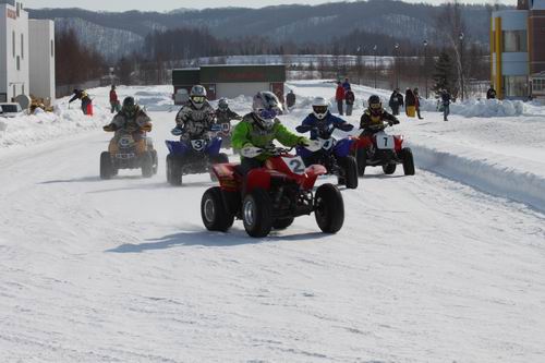ま~こんがりと焼けました(*^_^*) と言いたい本日は 北海道ATVチャンピオンシップ第4戦&耐久レース のイベントを開催しました! マジで天気が良すぎで、気温は5度以上でしょ、風は無風でしょ、なんだか楽しいでしょ? 今日なら ”ATVイベントのための日ですよ!” っていうBESTコンディション! とにかく最高の一日でした! でもコースはどろどろに溶けちゃったけど・・・ 来週は??? なんて事は気にせずに本日のイベントは今までのATVイベントとは一味違ってなんと!! さらべつ村の後援を頂いているイベントに昇格? したためにこんなスペシャルゲストが朝一番お越しいただけました\(^o^)/さらべつ村の岡出村長です。 みんな拍手!! 朝早くからのご挨拶誠にありがとうございました! 参加者を代表してお礼をさせていただきます。 「また来シーズンもよろしくお願いします。」とね(*^_^*)。 では本日開催したATVイベントの結果表をアップするのでみんなで見てあげてね! 今回は スプリントレース の結果です。 ◆KIDS class