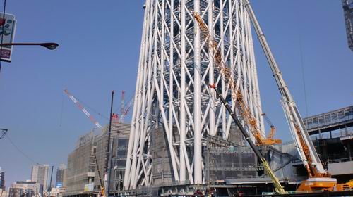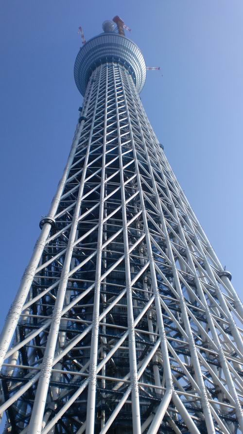 皆さん見に行きましたか? スカイツリーを!! いや~すっごいですね、下から見上げているのに、おまたが ”きゅーん” ってなっちゃいます。 私はささいな高所恐怖症なんですが、まさか下から見上げて ”恐い” と感じるとは思わなんだね(ー_ー)!! 足元の方でもとても大きなクレーンが活動していましたが、スカイツリーの足元なので 「小っちゃ」って感じるほど。この足元の全景を撮影するのにも結構離れないと入らないこのデカさ! さすが世界1の電波塔? だね!! それにしてもスカイツリー上部のクレーンは良く地震に耐えたもんですね! 下から撮影していて 「あのクレーン落ちてきたら・・・」 って思っちゃった。 OPENしたらまた来てみたいけど、もの凄く混雑してそうだから数年後にしよう(-_-)zzz