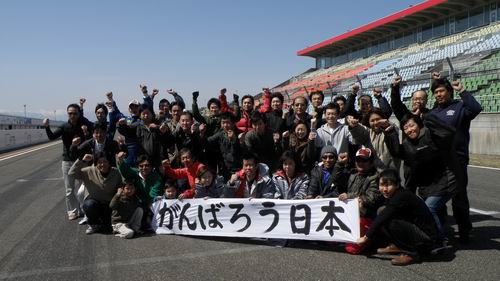 元気よく走り始めました~\(^o^)/ 日本全国みんなに北国から元気を届けますよ~(*^_^*) と、いう気持ちでみんなで記念撮影をしてみました! 協力してくれたみなさん本当にありがとね!! コースが雪解け直後なのでまだまだBESTタイムが出るようなコンディションではなかったけど、みんな元気に走りまわっていたんですよ! 因みに本日の最高周回数はこのお方・・・CR-Zです。 よく走りました・・・ 燃料も2回給油しました・・・ タイヤも無くなったそうです・・・ その周回数は 100Lap越。 ホントによく走りましたネ! またガンガン走りに来てください。 そして他にも・・・