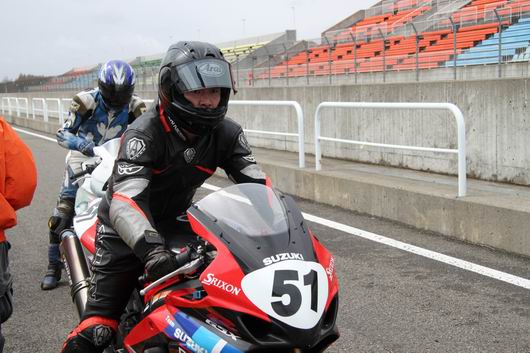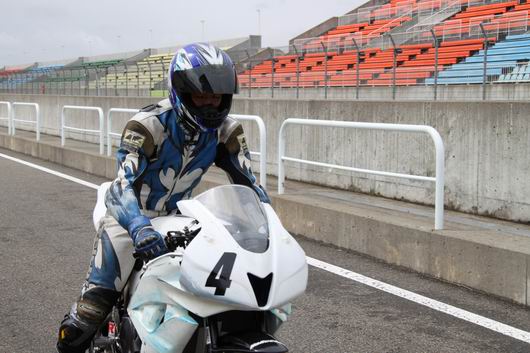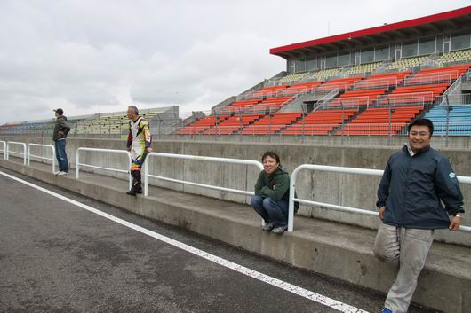 我慢できずコースイン。 戻ってきて、「ダメだ。滑る。膝擦れなかった。」なんて話をしていました。 午後にはすっかり天気も良くなり、4輪の時間でしたが、合間を見て走行。