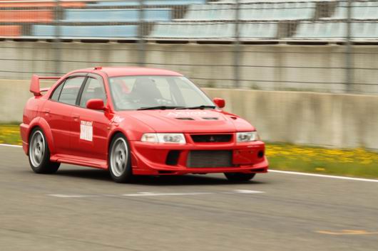 いつもバイクでサーキットを走られているE本さん。 「今日は車で走ってみようと思ってきました」と愛車のレガシィで4輪初走行。2000ccのNAで、「ストレートで160km/hしか出なかった。」と話されていました。