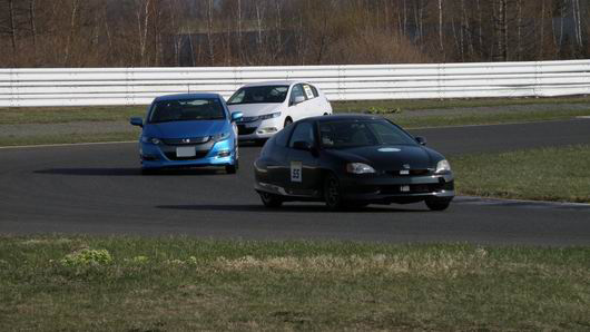 ECO耐久のスタートはこんなに静かなんですよ! 一番スタートダッシュがいいのがヴィッツっていうのがウケルでしょ。 燃料消費最大の敵はスタートダッシュ! 燃費イベントなのでアクセルは踏めません。