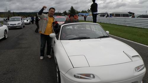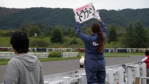 そ~です PITサインボード です。 朝一番で 「なんか紙あるかな~ 」というからもしかしてと思ったらやっぱり「サインボード忘れちゃって(+_+)」との事。 しかしノープランでもクラス優勝しちゃうんだから凄いチームですよね! ロドスタに乗っている時に見つけたMonchaの笑顔素敵でしたよ! ◇クラス2位/総合8位 №81Monbrazo弐号/ロードスター