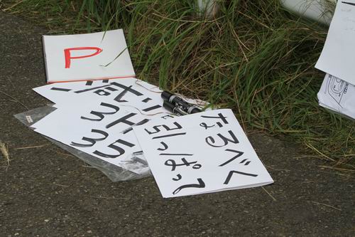 PITサインも無線機などの近代兵器は使用禁止になっているので写真のような オリジナルサインボード を各チームは用意している。*本当はサインボードを忘れただけかもしれない・・・* “参加者みんなで手作りイベント”って感じかな? PIT作業の電動工具&インパクトの使用も禁止しているので、物凄くアナログチックな耐久イベントなんですよ!