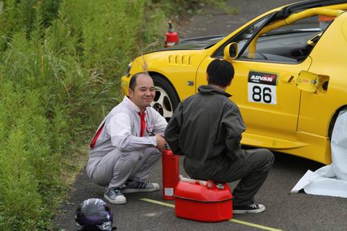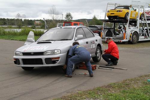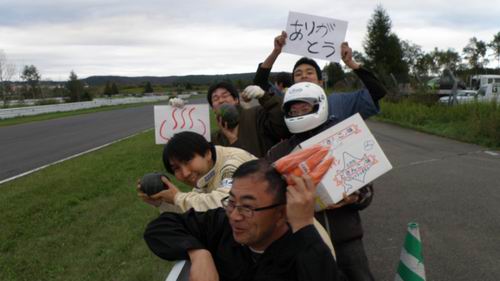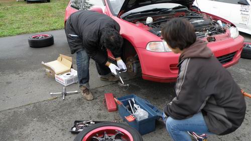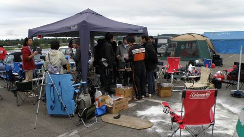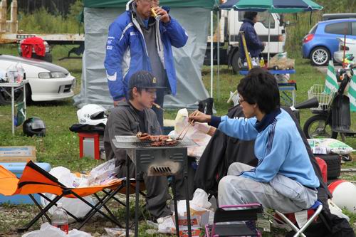 「やば・・・ ローターがだめだ」という事であっちこっちに電話したけど「無いよ~」という冷たい声が続いていたけどもしかしたら・・・ と電話をしたAXION(釧路)で「あ~あるよ! 持ってくかい?」との暖かい声が。 「わざわざ持ってこなくていいよ~」と答えると「いまジュニ耐の参加者来てるからクルマに積んどくわ~」と嬉しい返事。そして持って来てくれたのは№77AXION雰囲気組さんでした。