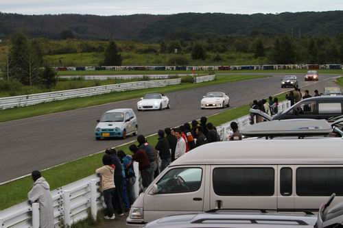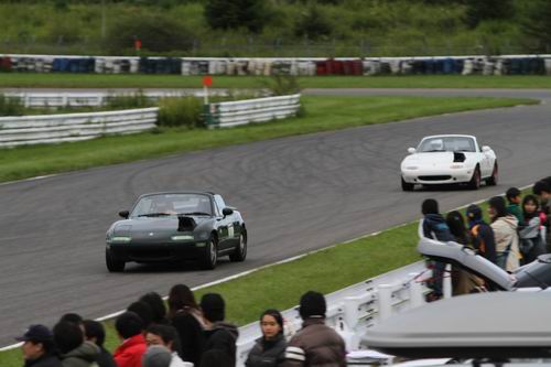 まるで鈴鹿サーキットで開催していた “ポッカ1000” のようでしょ? えっ? 全然違う?? そ~だよね、自分でも 「無りあるな~」と思うけど、こんなクルマと一緒にレールイベントをできる事が素晴らしいと思うけど・・・ そ~思わない? たまに 「踏みつぶされないでね」と思う時もあるけど、選手みんなで注意し合ってくれていると 勝手に思っている ので、このスタイルは崩したくないので走る際には十分注意しましょうね! 気持ち良さそうなのはロードスターかな~・・・ 燃費ではヴィッツかな~・・・