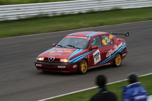 413Lap/8時間00分50秒064/Best58秒453/Pit6回 お見事! 以上! と終わらすと怒られそうなのでちゃんと書こう! 「レーシングマシンなんだから勝って当たり前じゃん」と思うでしょ? いやいやいやそんなことは無いんですよ! ライバルになるマシン達(ロドスタ、ヴィッツ)とはあまり変わらないラップタイムなんだし、燃料タンクだって小さいし、ドライバーだって不慣れだし・・・ と勝てそうなマシンでも絶対に勝てるとは限らないのがこの耐久レースの面白さなんだけど、今回はこのチームに勝利の女神がほほ笑んだね。 特にレース終盤に№89あんたたちロードスターを追い上げたあの走りとあのスピン! なにも終盤にあんな見せ場を作らなくても良かったものを・・・。 1コーナーのスピンに驚いて2番手を走っていたあんたたちロドスタもビックリしてコースアウトしちゃったべさ(+_+)。 あの時はびっくりしたな~・・・ 「あっ終わった・・・」とも思ったけど、コースに復帰してからまたまたTOPを奪い返してのクラス優勝と総合優勝のW受賞は拍手拍手です。 本当におめでとう! でももしも №89あんたたちロドスタが燃料に余裕があって全力で逃げたらど~なっていたんだろう? ま~そんな事は無いと思うけどネ! あんたたちロドスタは 「肉ほし~」って言っていたから。 ◇クラス2位/総合15位 №95 グッチーコルセ155/アルファロメオ