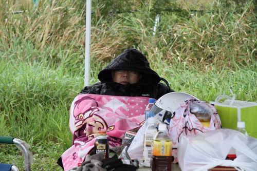 11時過ぎという風にちょっと気を使って書いたけど本当は・・・ 朝一番からみんな炭をおこしていました! 写真3名はチーム名に すき焼き(№93R-Vow!青空すき焼き号)って入っているくらいだから最初っから “すき焼きやります” って事でしょう。