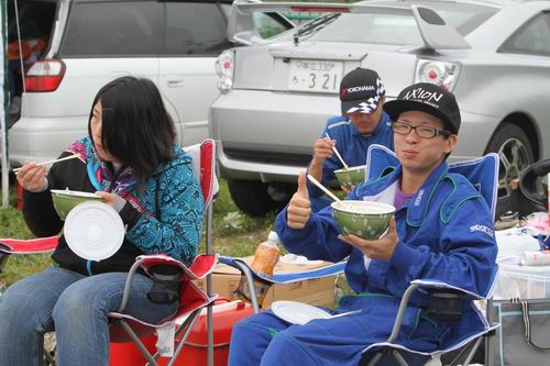 374Lap/8時間00分51秒190/Best1分02秒206/Pit15回 ご家族みんなで楽しんで頂いているのはこのAXION雰囲気組のヴィッツです。 ドライバーとして参加しているお子さんはなんと高校生。 「おいおいおい無免許でいいのか?」と思うかも知れませんが、大会前に何回もサーキットに通って練習したからいいんです。 しかも “お父さん&保護者が助手席に同乗する” という保護者同伴システム? をお願いしているのでイベントへの参加をOKにしています。 「お~こんな事もやっているんだ~」とお子さんと一緒にサーキットで遊びたいと思案中のお父さんは参考にして下さいね。 家族そろってサーキットでBBQor豚丼セットは楽しそうでしてよ!