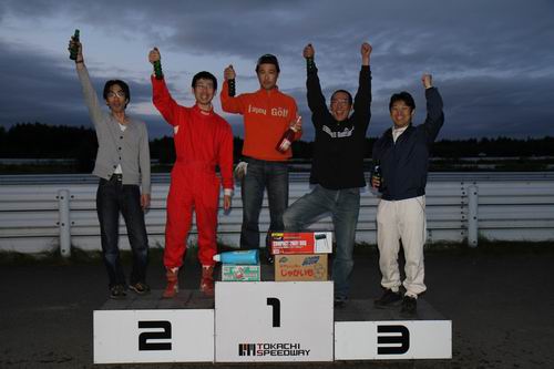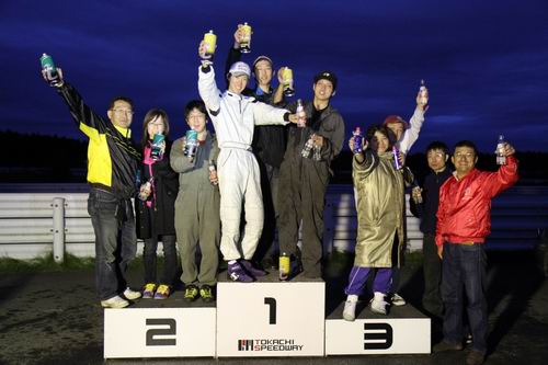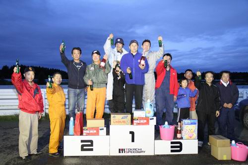 チーム員も祝福のガッツポーズ! みんな頑張ったね~\(^o^)/ ということでここからはみんなが気になっているクラス別にチーム成績を紹介するぞ! ◆20TCクラス(2000cc以上のターボエンジンクラス) 20TCクラス表彰式
