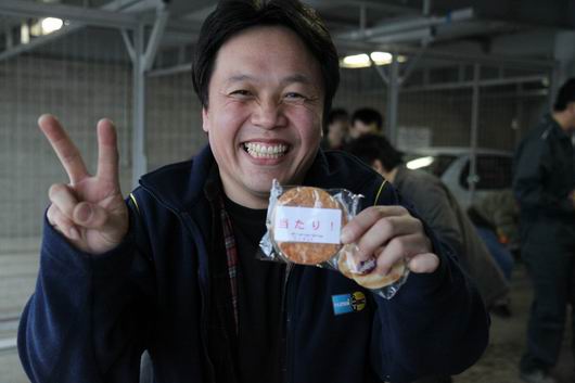 賞の他にも、もち撒きならぬせんべい&カップ麺撒き?を開催。 これも初年度からあるイベントです。(撒いているものは変わったかもしれません) 撒いたものに“あたり”が混ざっていて、それをGETした人には賞品も当たります。