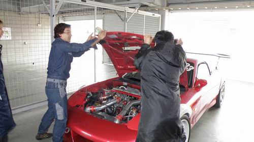 10月29日(土曜日)に待ちに待った高速道路(札幌~サーキット)が開通した事を祝して開催した 高速道路開通(札幌~サーキット)記念サーキット走行会 ”3コース一気攻め”にはとても沢山の方々が参加してくれました! この時期にこんなに集まってくれるなんて久しぶり? これもきっと高速道路が開通したから快適にサーキットに来る事ができるようになったからなんだろうな~・・・ と思う今日この頃(*^_^*) 実際に高速道路を利用して来たお客様からは 「いや~ マジで楽ちん」 「全然いい~」と絶賛の声が多数。 「時間はどんくらい?」 と聞いたら 「ま~そこそこ・・・」と言葉を濁していたのでしつこくは聞き出さなかったけど 「かなり時間短縮したな・・・」と思うな。 まだ高速道路を利用していないみんなも一度くらいは利用してサーキットに遊びに来てね! 11月3日(祝日)には 高速道路開通記念第2段(急遽決定)の ”さらべつ村 レストハウスかしわ ぶたドン杯”を 『腹一杯走れる文化の日走行会』の中で実施するので遊びに来てちょうだいね! この時期は自己ベスト更新には最適なコースコンディションだと思うので サーキット走行&ぶたドン を堪能してください。 この赤いFDも3コースを堪能するために札幌からご来場・・・シェイクダウン&Sun耐の練習らしく、マシンもピッカピカ。 仲間同士でせっせせっせとエンジンルームをのぞきこんでセッティング中? かと思いきや・・・