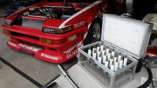 AE86ら~\(^o^)/。 素敵ですね~ ピッカピカですね~。 筑波サーキットへの遠征を控えているらしいけどどんな按配なのかな? タイム的には「十勝初走行だからわかんね~」との事ですが、このカッコよさだけで十分です。 キャブ車? ご用達のプラグもご覧のように用意周到!