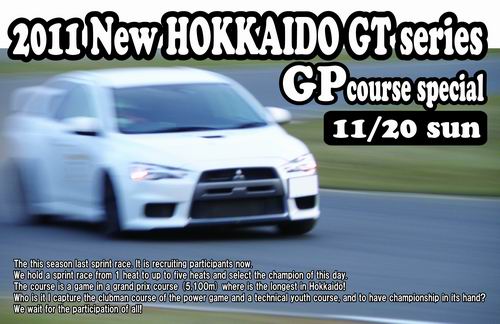 皆様ご存知&予定していると思うけど 11月20日(日)には New北海道GTシリーズ特別編 が GPコース(5100m)で開催されるぞ! しかも決勝がいつもの倍走れる 4ヒート制 だ! もう走り応え満点! 詳しいイベント情報は ホームページ内のイベント情報 を見てね!