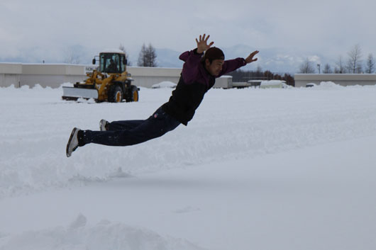 雪に飛び込んだり、
