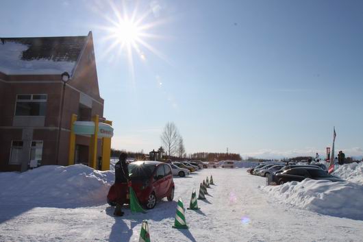 本日は“成人の日”。 新成人になられた方、おめでとうございます。 以前からこの“成人の日”に開催したいと言われていたUNdf代表の上田さんの念願が叶い、本日『UN dream factryスノー走行会』を開催。喜び?のVサイン 朝早いと参加し辛いと遅めの集合が信条のこのイベント。 地元の参加者がほとんどなので、ゆっくり朝食をとってから来場された事でしょう。 地元と言う事で、観戦者も多いです。