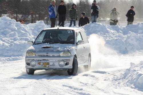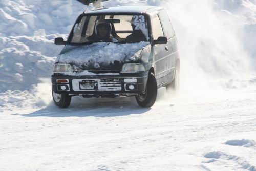 お正月休みも終わり皆様は元気にクルマに乗っていますか? 一般道では当然のごとく安全運転していると思いますが、つるつる路面に「あ~ いらいらする~♫」 なんて思っている方々も多いと思います。 そんな時のストレスを発散する場所がここです。 そ~です 十勝スピードウェイのようなサーキット場 になるのです。 ここなら思いっきり走る事(コースの中ね)ができるし、万が一の時の危険回避能力も身に着くと思うんだけどな~・・・。 そんな気持ちで参加してくれたのか、マジでスタッドレス№1の座を狙いに来たのかは参加者個々の自由ですが、とっても沢山の方々に参加していただいた 新春スタッドレス№1決定戦 に参加していただいた皆を紹介します。 今回は 街乗りスタッドレスタイヤ装着の FFクラス と FR&MRクラス をアップ! ◆街FFクラス №1 山田康太 北見市 レビン DL-DSX2正回転1'48"81 逆回り1'39"32 合計3'28"13 順位4位 №2 近藤弘幸 北見市 セルボ HK-アイスベアー