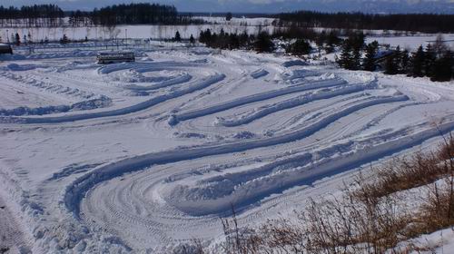 冬のコースでも 登り坂&下り坂 がある珍しいコースレイアウトなので楽しめると思うけど、下り坂はゆっくり走ってくださいね。 一応下り坂はできるだけ雪を除けて 地面 を出しているけど、地面も凍る寒さだと思うから注意する事。 ◆コースの幅はこんな感じ