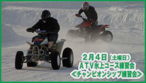 冬でも楽しめるATVだけど、ATVユーザーのみんなはちゃんと楽しんでいますか? 「寒いから・・・」とか 「滑るから・・・」などなどダダをこねていないで冬も思いっきり楽しもうじゃあ~りませんか\(^o^)/ 明日になるけど 2月4日(土曜日)はサーキットでATVを走る事ができますよ! ATVチャンピオンシップ第2戦(十勝大会 2月5日開催)に参加する方々はもちろん走ると思うけど(走るに決まっている・・・ ハズ。)、チャンピオンシップに参加していないATVユーザーも走る事ができるから、みんなでATVを楽しもうじゃあ~りませんか! ◆2月4日(土) ATV練習会日程 ・受付時間 朝9時~ 受付開始 ・走行時間 受付後~15時頃 (12時頃~12時30分頃はKids&100open専用コース) ・走行料金 100Open以上の参加者 3000円/1名 (Kidsクラスは無料) ◆2月5日(日) ATVチャンピオンシップ第2戦の案内 ・集合時間 6時30分~7時15分頃 ・車両検査 7時00分~7時30分頃 ・練習走行 7時30分~8時30分頃を予定 ・走行説明 8時30分頃から *説明後にグリット抽選* ・競技時間 9時00分~ Kids⇒100Open⇒MID⇒OPEN の順に実施予定 ・特別競技 14時00分頃~ KIDS&100open、MID、OPEN *スタッドレス専用コースでショートレース開催予定。 *パドルタイヤの使用は禁止 夏仕様で参加してね。 ・閉会式 15時30分頃から実施予定 *クラス別に表彰* 冬も人生も ”楽しんでなんぼ” のハズだからサーキットでじゃんじゃん楽しもう! 観戦者は入場料無料なので 迫力のあるATVレース を見に来てね~\(^o^)/