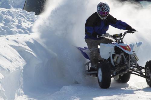 明日開催する 全道ATVチャンピオンシップ第2戦 は見に来た方がいいぞ~!! なんといっても超迫力のATVバトルが目の前(約4m位?)の所を駆け抜けるので、それはそれは迫力満点なんだ! こんな走りも目の前だし・・・こんな雪をかぶりながらの走りも目の前だし・・・