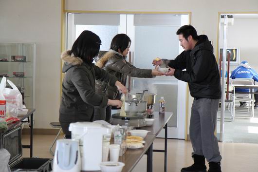 今回はSYSTEM-R隊長がお仕事の為来られず。 ですが他のメンバー家族が来てくれて、昼食にうどん(キムチ風と鶏ガラ風の2パターン)を用意してくれました。 すばらしい団結力です。寒かったので体が温まりました。